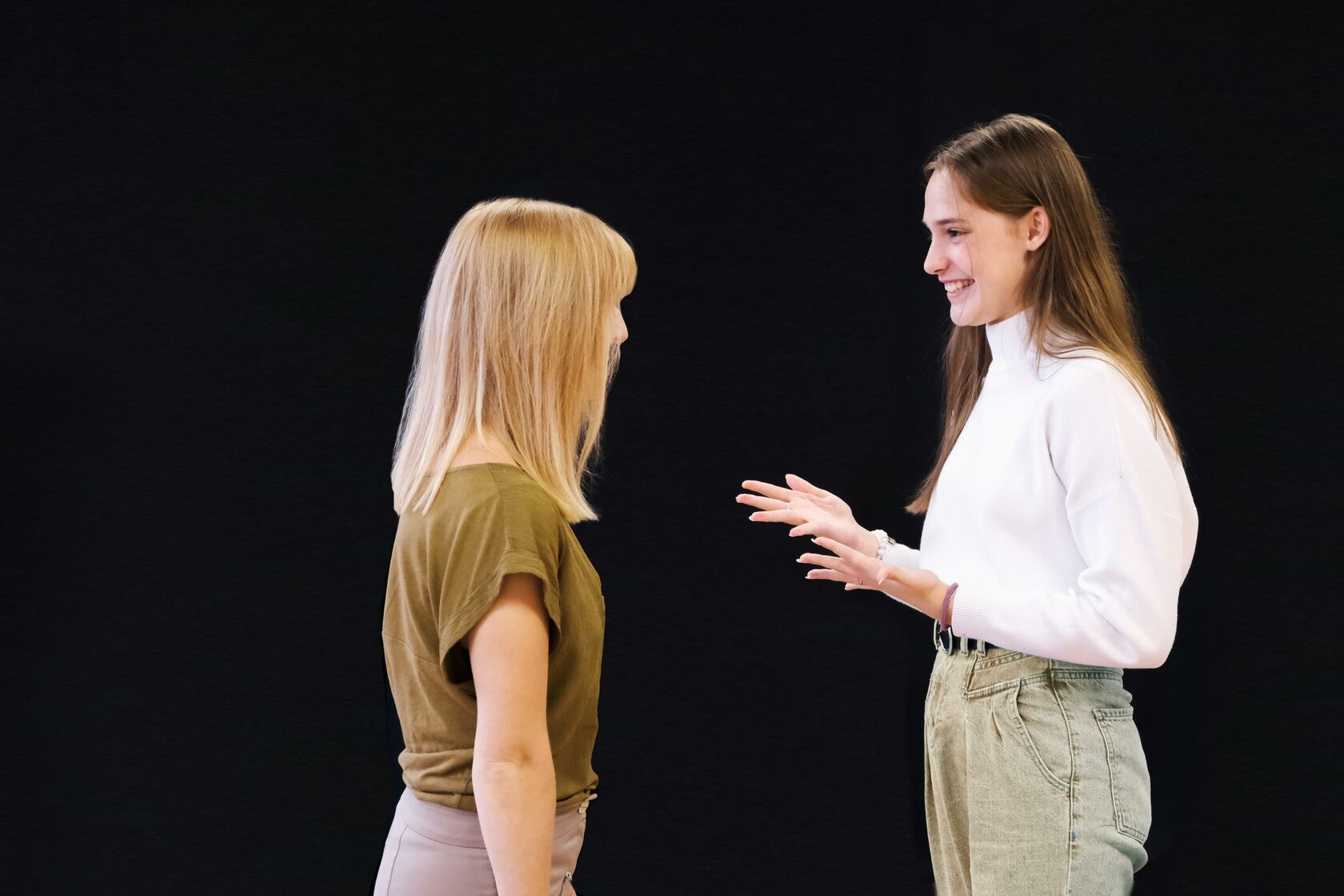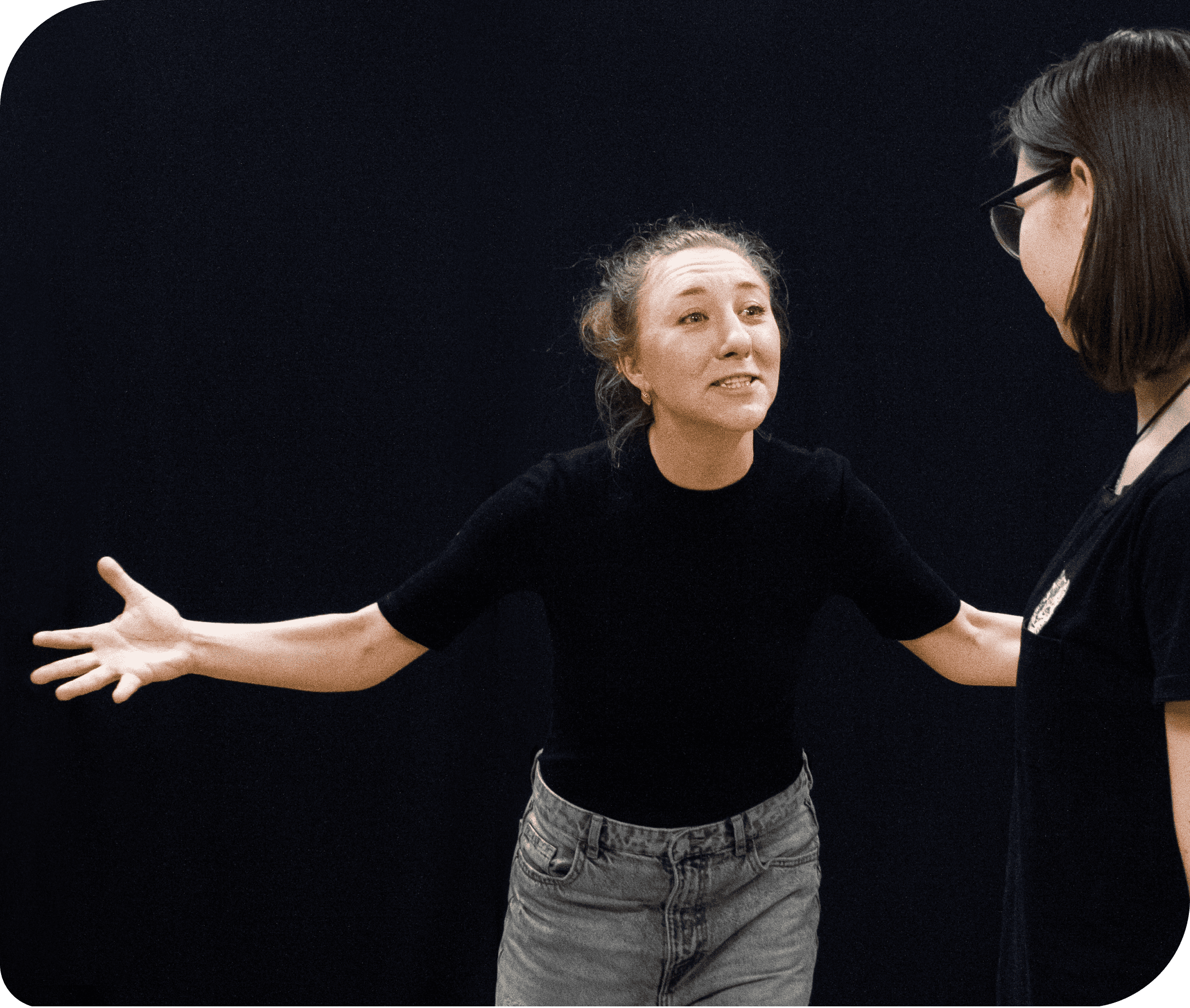 Пришла научиться звучать убедительно, а в итоге знакомлюсь с новой собой. Цели и задачи изменились, стали глубже. Здесь не стоИт во главе – "сыграть спектакль". Творческий продукт – лишь средство. Средство для того, чтоб стать чуточку смелее, увереннее, раскрепощенней, почувствовать опору в собственном теле.